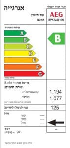 דירוג יעילות אנרגטית לפי תקן ישראלי: B