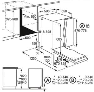 מידות המדיח (ע*ר*ג) במ"מ: 570*596*818-898
