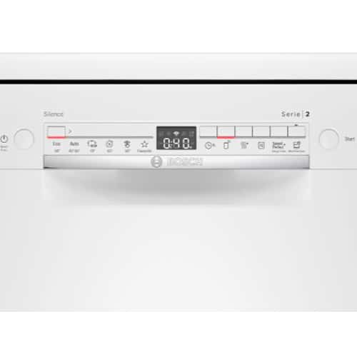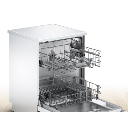 מדיח כלים רחב עומד מבית Bosch, סדרה Serie 2, בעל 12 מערכות כלים, 6 תכניות הדחה ומגוון מערכות ייחודיות להקלה על המשתמש, חיסכון במים ובחשמל.