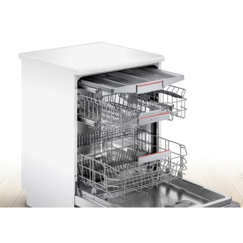 מדיח כלים רחב עומד מבית Bosch, סדרה Serie 4, בעל 14 מערכות כלים, 6 תכניות הדחה ומגוון מערכות ייחודיות להקלה על המשתמש, חיסכון במים ובחשמל.