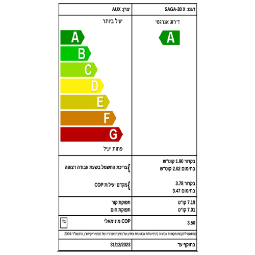 מקדם יעילות 3.66 C.O.P בחימום