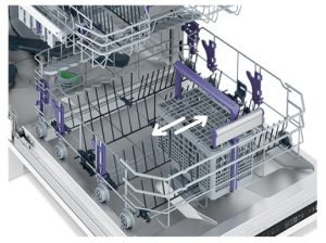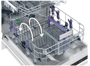 מדיח כלים רחב 5 תכניות Beko בעל מקום נוסף לסירים ומחבתות במדף התחתון, מערכת SteamGloss ותמיכה מתקפלת בקלות לצלחות.