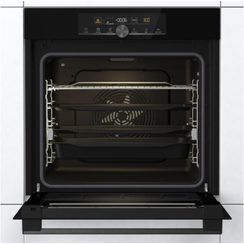 תנור בנוי עם תוכנית אדים פירוליטי (ניקוי עצמי) בנפח 77 ליטר גימור זכוכית שחורה מבית gorenje דגם BPS6747A06BG