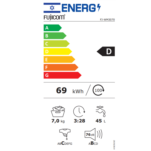 מכונת כביסה Fujicom פתח חזית דגם FJ-WM3070
