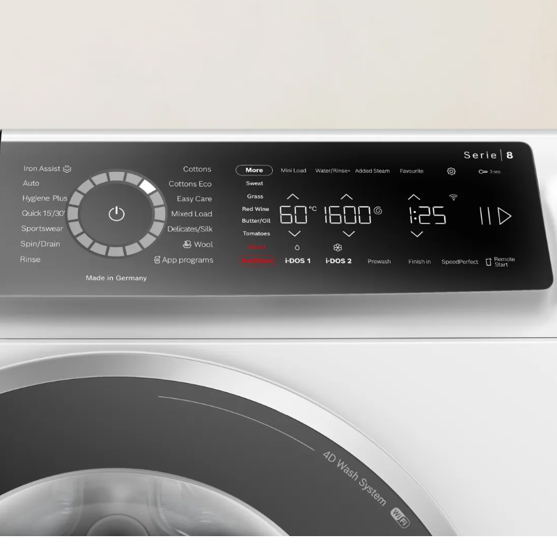 תכניות מיוחדות*: כותנה, סינתטית, בגדי ספורט, כביסה מהירה/מעורבת, תכנית שקטה, חולצות,HygienePlus – תכנית הגיינית במיוחד, צמר, בדים עדינים/משי, מהירה ב15- או 30 דקות בלבד!, תכניות נוספות דרך האפליקציה (מגבות,ו ילונות ועוד!)