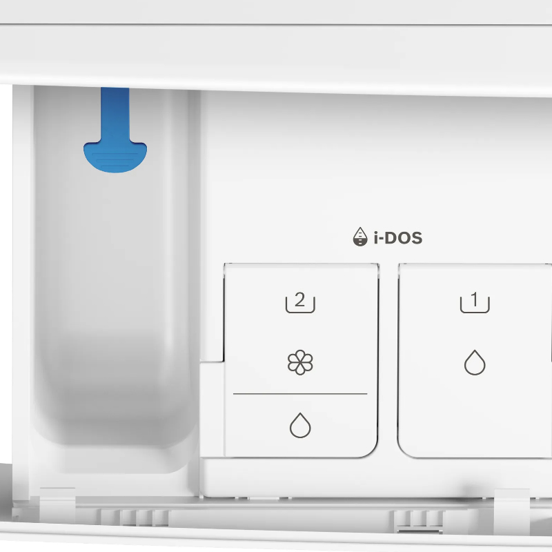ממלאים נוזל כביסה רק פעם בחודש* ומערכת i-Dos קובעת מינון מדויק של נוזל ומרכך הכביסה באופן אוטומטי