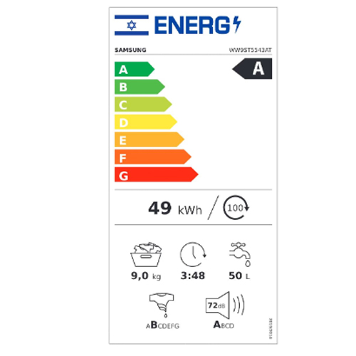 מכונת כביסה 9 ק"ג פתח חזית 1400 סל״ד מבית SAMSUNG סמסונג דגם WW9ST5543AT