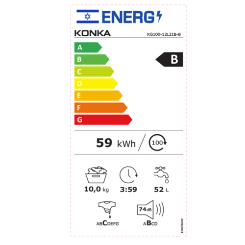 מכונת כביסה פתח קדמי 10 ק"ג KONKA דגם KONKA KG100-12L21B-B