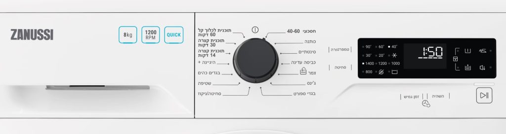 חיוויים נוספים טמפ' 5, מהירות קרה 4, ביטול סחיטה, השהית שטיפה, השריה, שטיפה נוספת, אל קמט, שקטה, התחלה/ עצירה
