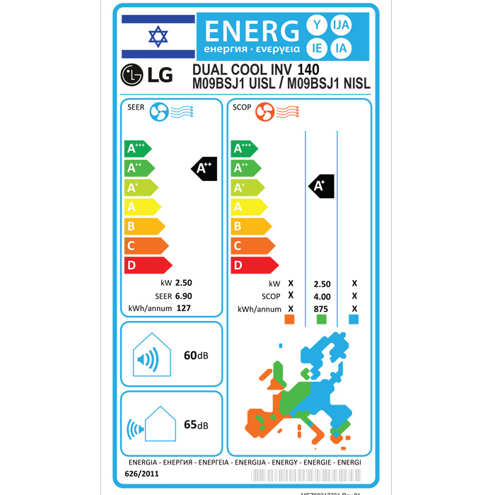 מזגן LG DUAL INV 140 מזגן עם טכנולוגיית אינוורטר דירוג אנרגטי A++