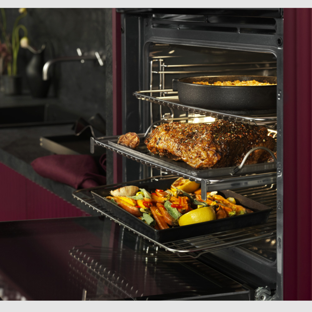 MaxiTray™ מגשים ענקיים המסופקים עם התנור: מגשים בציפוי אמייל אפור לאפיית עוגות ועוגיות, מגש בציפוי אמייל אפור עמוק במיוחד 50 מ"מ לכל סוגי התבשילים