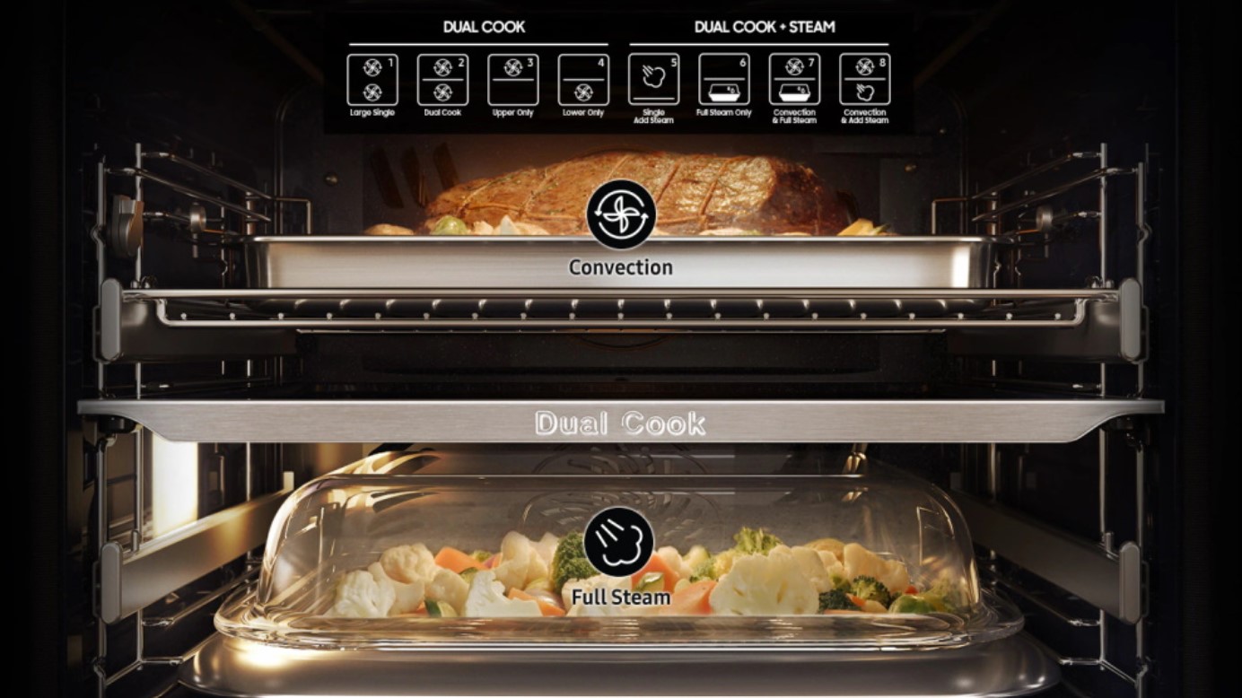 האזורים העליונים והתחתונים של Dual Cook פועלים באופן עצמאי או ביחד