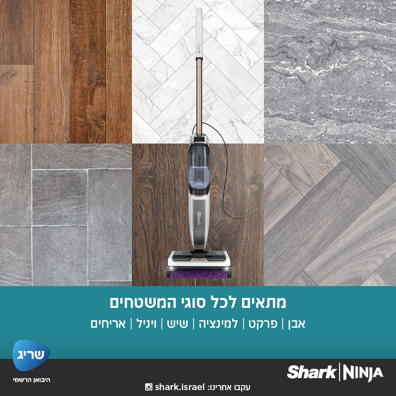 כריש בנוחות- פתרון יומיומי לבית נקי ללא כימיקלים. מנקה, מחטא ומקרצף בקיטור הכל בפעולה אחת. מתאים לכל סוגי הריצוף.
