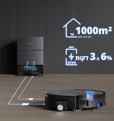הטכנולוגיה המתקדמת מאפשרת ל-DEEBOT להציע מחדש בחוזקה במהלך הפסקות קצרות בניקוי, ולהחזיר 6% מהסוללה בתוך 3 דקות בלבד