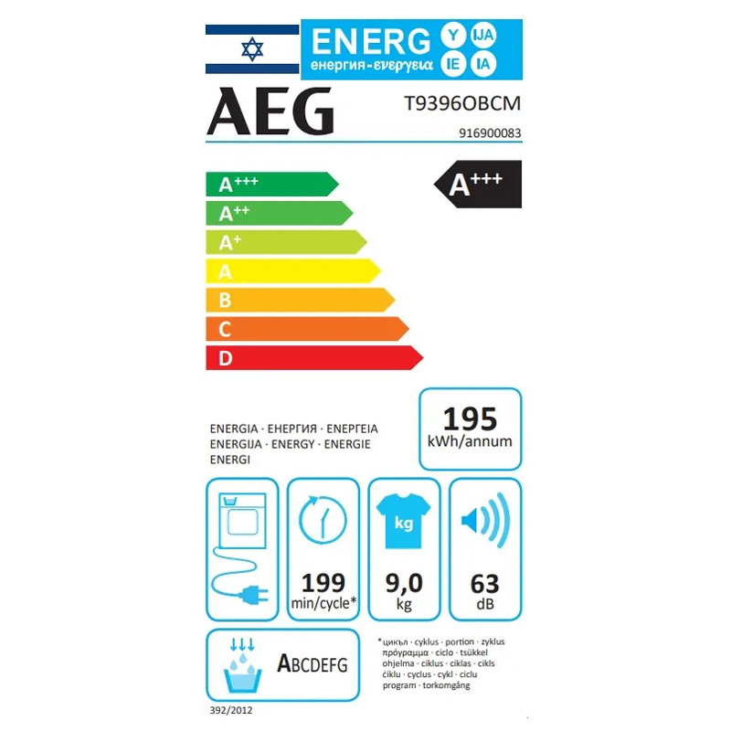 מייבש כביסה פתח חזית AEG אאג T9396OBCM