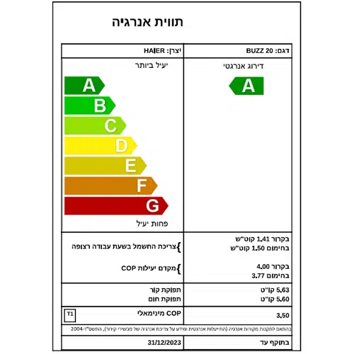 מקדם יעילות COP: קירור: 4 COP | חימום: 3.77 COP