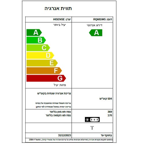 מקרר 4 דלתות 581 ליטר Hisense דגם RQ681WG