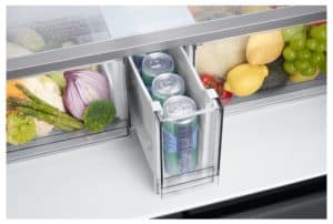 מגירות אחסון מחוזקות בדלתות המקרר.
