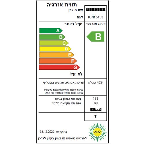 תא הקפאה: 70 ליטר מתוכם תא 4 כוכבים: 69.9 ליטר