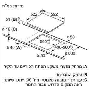 הבנייה סטנדרטית – יש להיעזר בשרטוט בלבד לפני חיתוך משטח העבודה