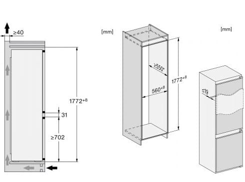 מקרר אינטגרלי מקפיא תחתון 56 ס"מ מבית MIELE מילה דגם KFN 7714F