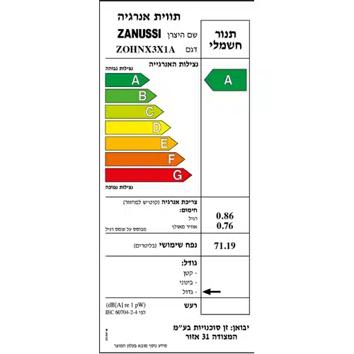 תנור בנוי 74 ליטר ZANUSSI דגם ZOHNX3X1A