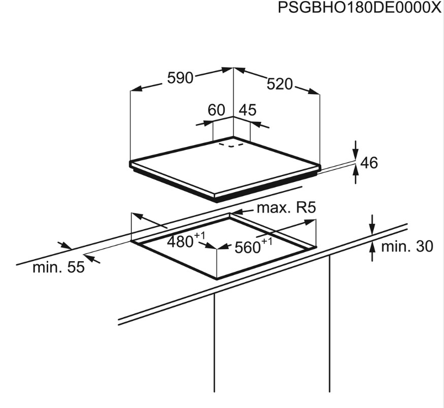 מידות הכיריים (רxע) במ"מ: 520×590