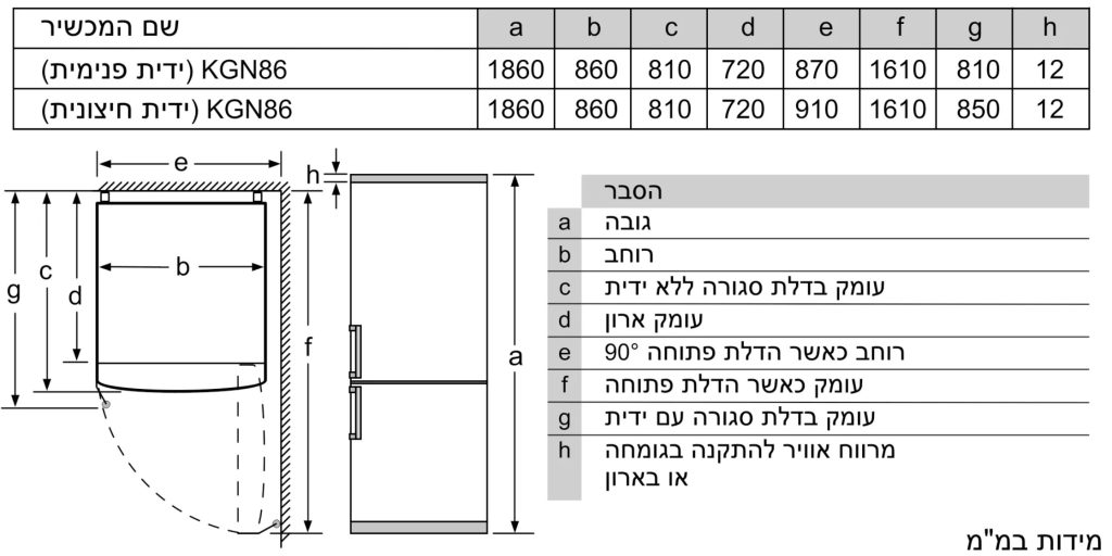פתיחת דלת ימנית, ניתן לשנות את כיוון פתיחת הדלת, פתיחה על ציר אין צורך להשאיר מקום מהקיר