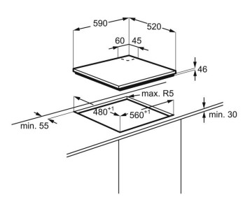 מידות הכיריים (רxע) במ"מ: 520×590