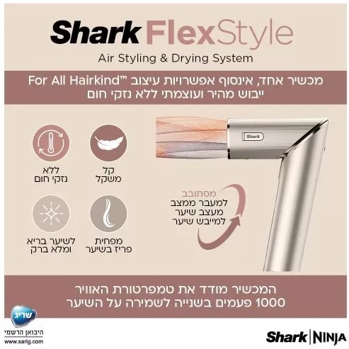 כשעוצמה ומהירות פוגשות אינסוף אפשרויות עיצוב דמייני מחדש את השגרה שלך עם העוצמה והנוחות של שארק FlexStyle לעיצוב וייבוש השיער בקלות ובנוחות ללא נזקי חום