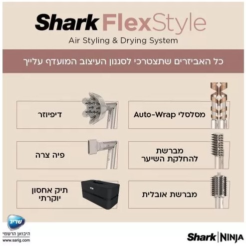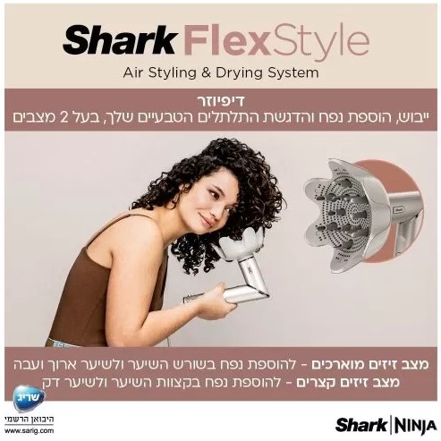 כריש בנוחות – שארק פלקס סטייל בעל הטכנולוגיה הייחודית המאפשרת מעבר פשוט ממייבש שיער למעצב שיער עם כל האביזרים שתצטרכי לכל סגנונות העיצוב – מתאים לכל סוגי השיער, מבית שארק | נינג’ה.