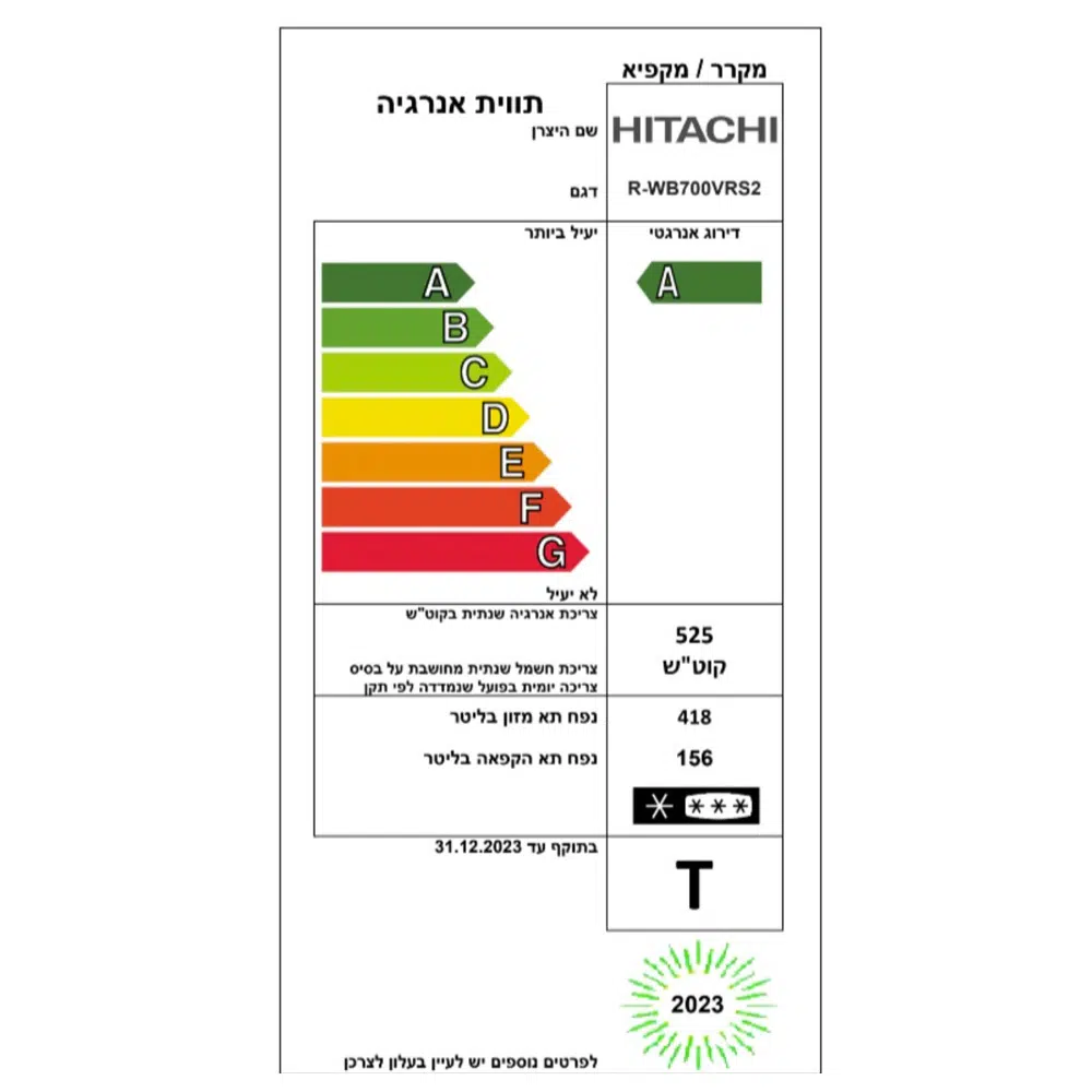 צריכת אנרגיה שנתית: 525 קוט"ש
