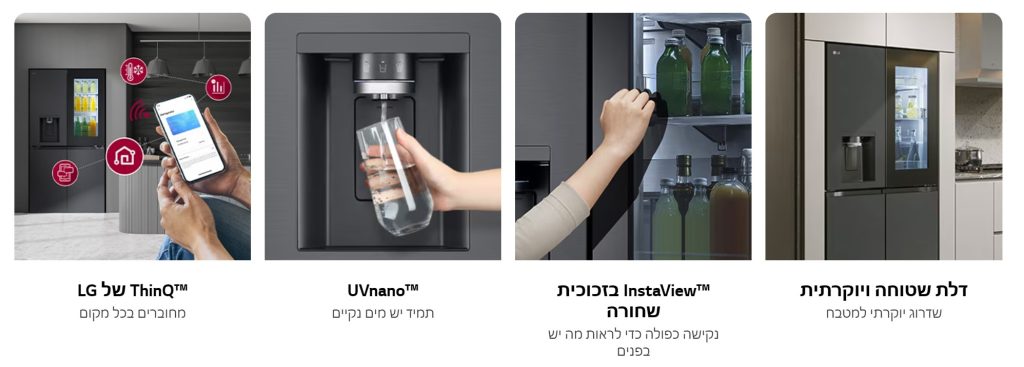 מקרר מקפיא תחתון 4 דלתות אל ג'י GR-730BINS נירוסטה מושחרת
