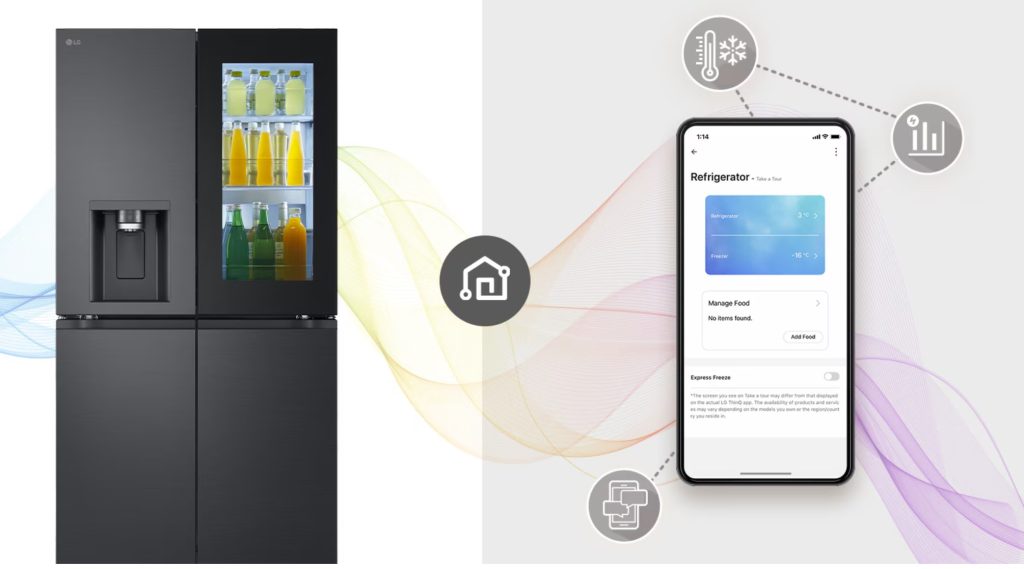שלטו במקרר שלכם בקלות וקבלו התראות עדכניות בכל מקום, באמצעות אפליקציית ™ThinQ של LG