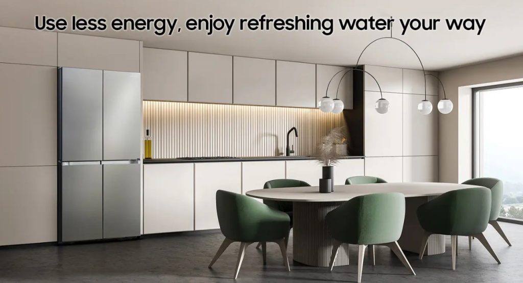 בלעדי לסמסונג מערכת מים וקרח מוסתרת לעיצוב עכשווי ומתקדם של המטבח
