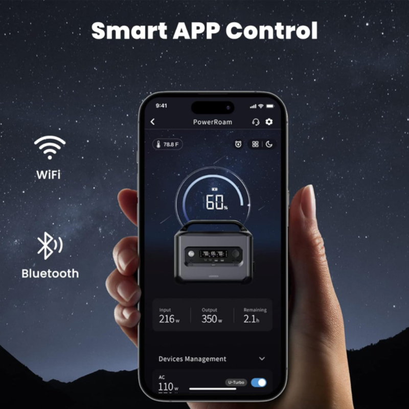אפליקציית PowerRoam: ניתן להתחבר באמצעות אפליקציה ייעודית לצפות בביצועי המכשיר, להתאים את ההגדרות, לבצע בדיקות דיאגנוסטיות ועוד, בזמן אמת מהמכשיר הנייד שלכם. פונקציות שניתן להפעיל דרך האפליקציה: מצב חסכון באנרגיה, מצב שקט, נעילת ילדים ועוד.