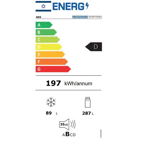 מקרר מקפיא תחתון 376 ליטר דגם AEG TSC72751DS