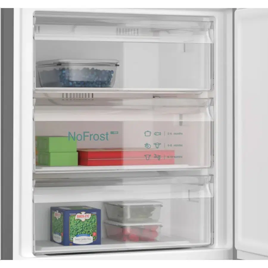 מעכשיו אין צורך להפשיר את המקפיא כדי לוודא שהוא עובד ביעילות וכדי לשמור על הקפואים.טכנולגיית noFrost שואבת את הלחות ושומרת על האוויר יבש.זה מונע הצטברות קרח על הקירות הפנימיים או על האוכל שלכם וחוסך את הצורך בהפשרה.זה גם חוסך באנרגיה היות ומקפיא frost-free עובד בצורה הרבה יותר יעילה.