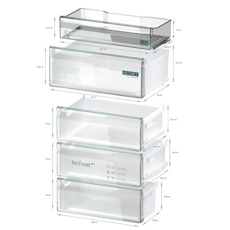<hyperFresh <0°C – יותר מקום לפירות וירקות. אקלים קר לדגים ובשר.