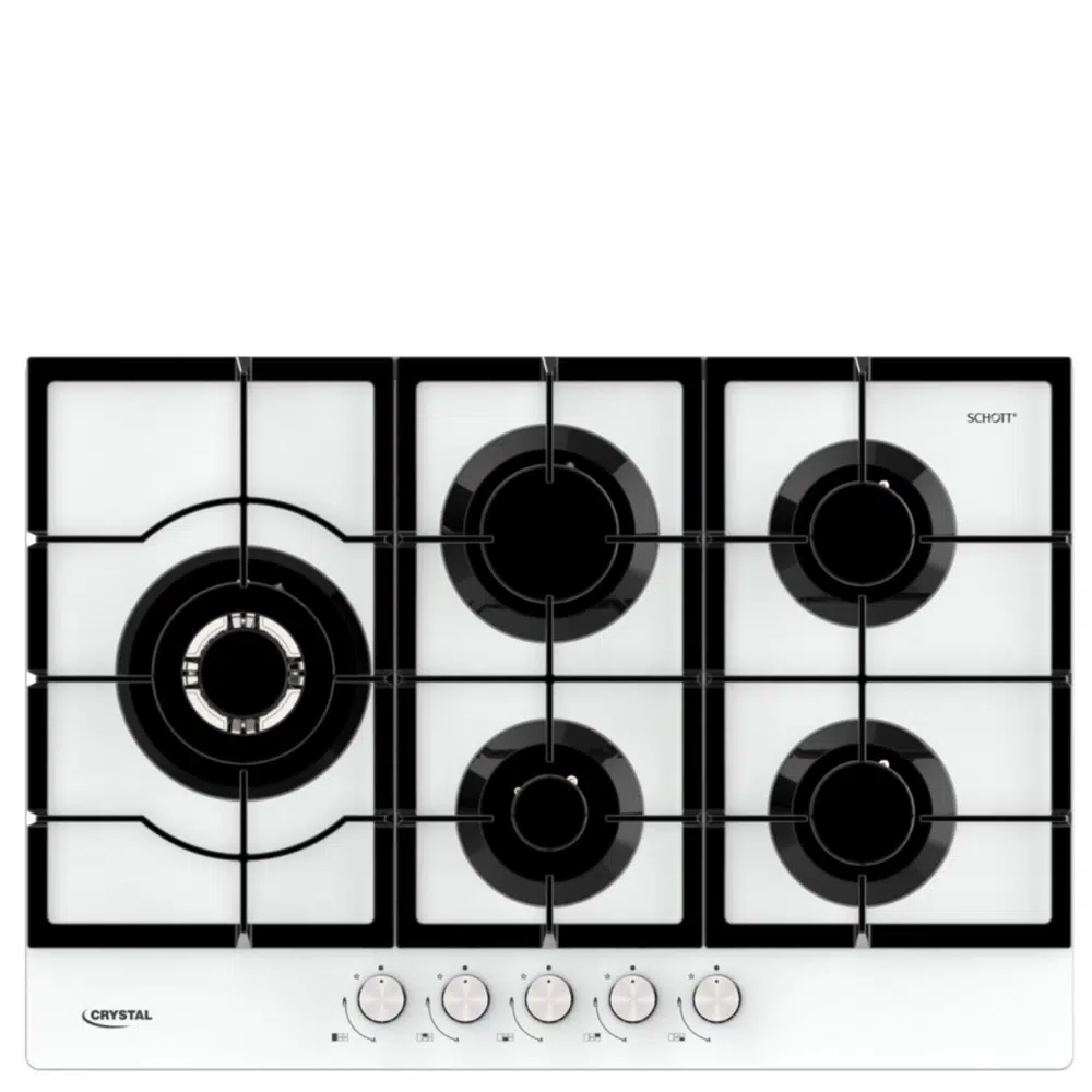 כיריים גז 5 להבות 75 ס"מ Crystal דגם MGH78GW זכוכית לבנה