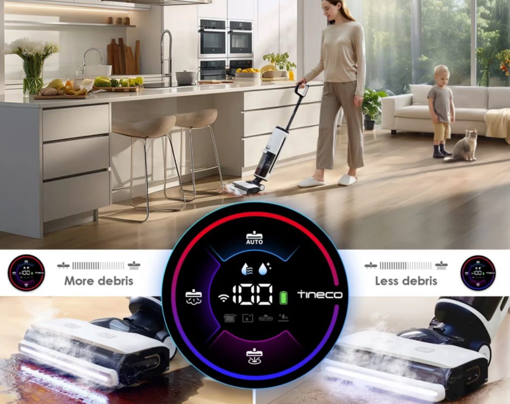 שואב ושוטף רצפות אלחוטי חכם עם קיטור מובנה Tineco Floor One S7 Steam