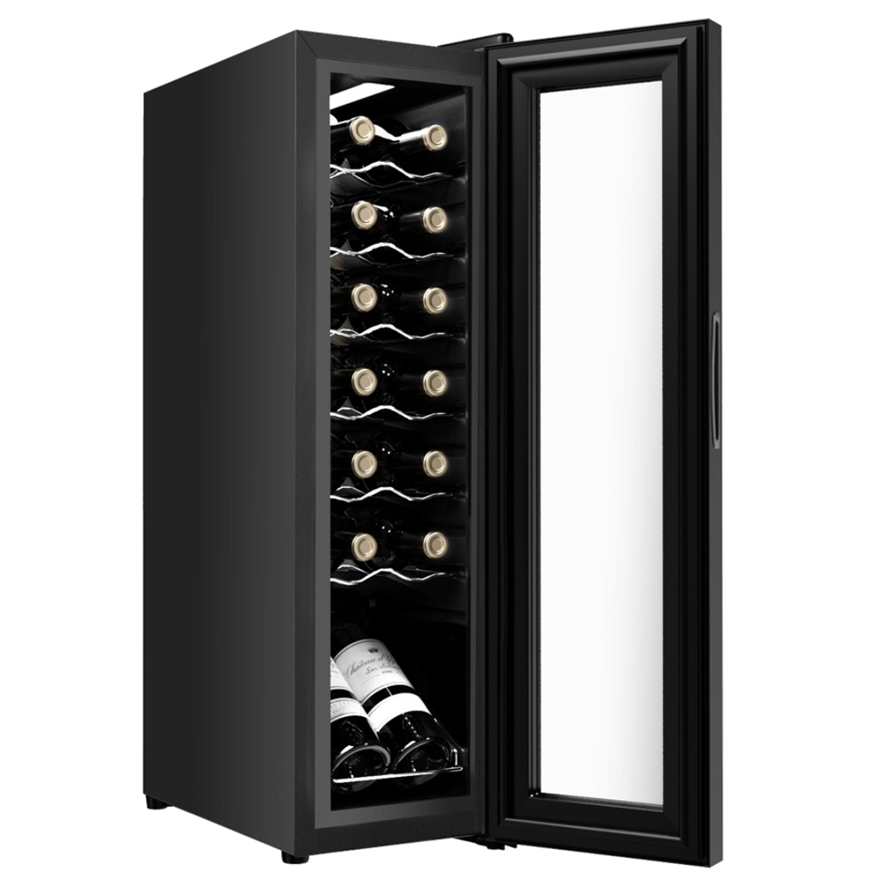 מקרר יין עם מדפי נירוסטה המיועד לאחסון של עד 14 בקבוקי יין אדום או לבן.