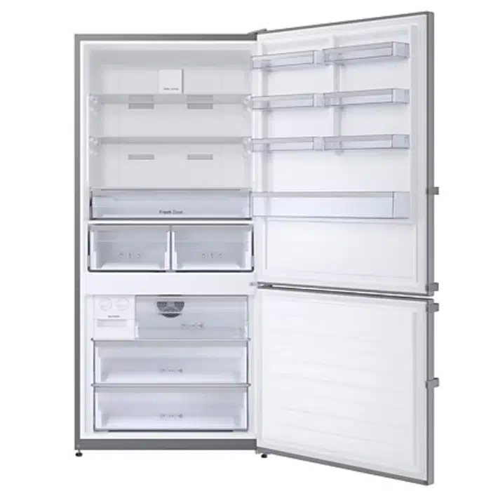 כולל מגירת צינון ענקית Zone Fresh לשמירה על טריות מוצרי חלב ובשר, שתי מגירות נפרדות לפירות וירקות לשמירה על לחות וטריות, שלושה מדפי זכוכית מחוסמת חזקים ונוחים לניקוי, ושבעה תאי אחסון בדלת לארגון נוח של בקבוקים ומוצרים קטנים.