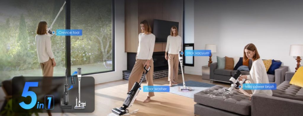 מצבי עבודה: שוטף חכם ושואב אבק מלא